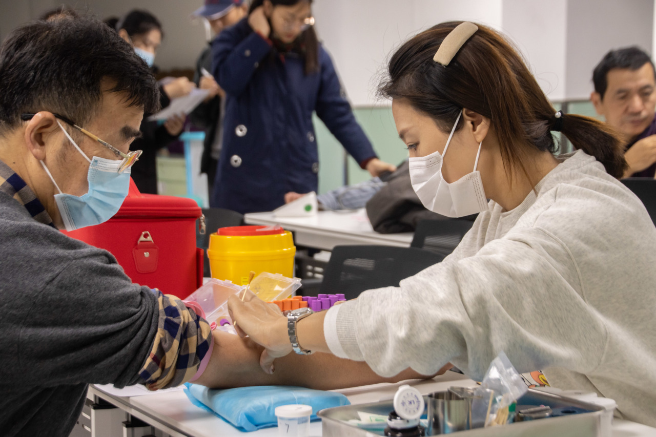 活动伊始,糖尿病专家针对糖尿病患者的血糖、血压、病史、有无家族史等信息进行糖尿病风险因素评估。然后,进行空腹检测建档,糖尿病患者参加包括血、尿常规、生化、C肽、胰岛素和尿微的免费检测项目,并佩戴免费连续监测设备。最后,专家为糖尿病患者现场解答疑难问题,并宣传教导合理饮食及目我管理注能力等糖尿病相关知识。