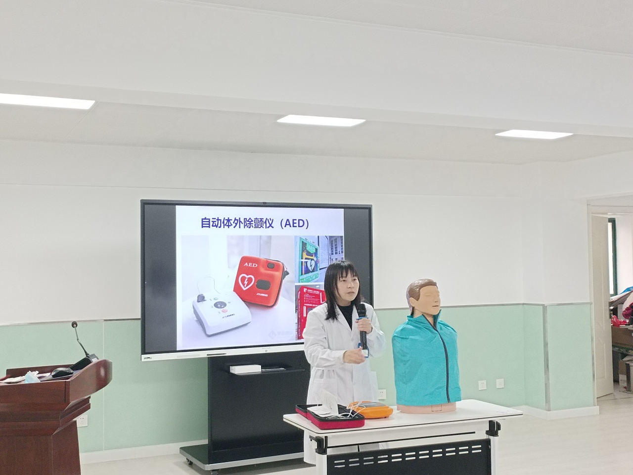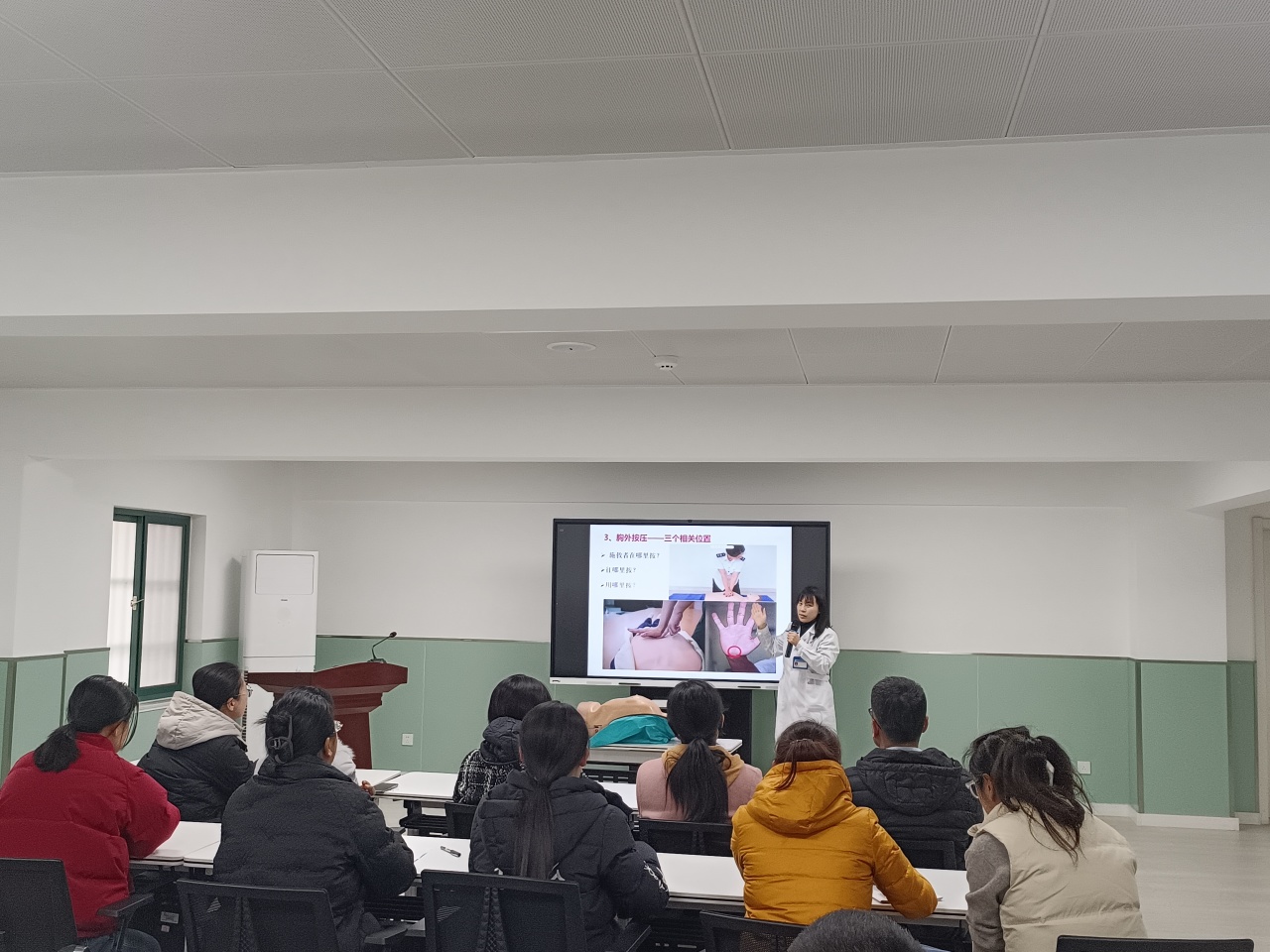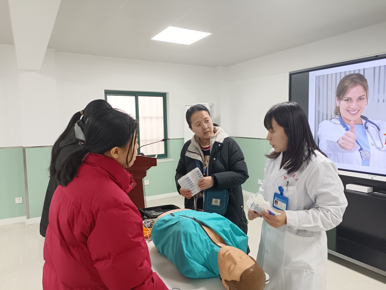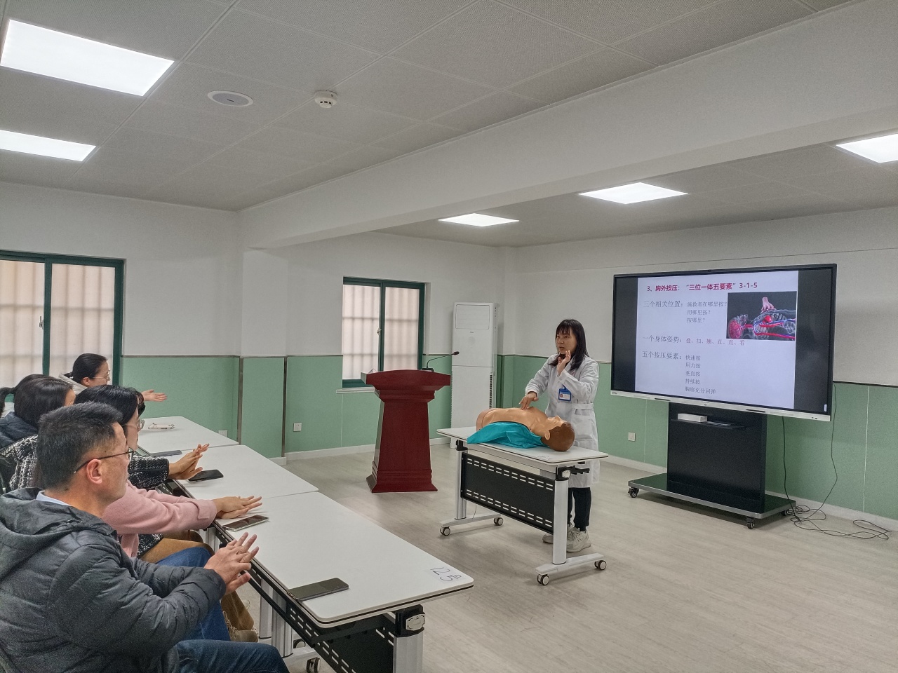 主讲医生通过生动的案例讲解、现场演示和互动问答,深入浅出地讲解了心肺复苏的步骤要领、AED的使用方法和海姆立克急救法。