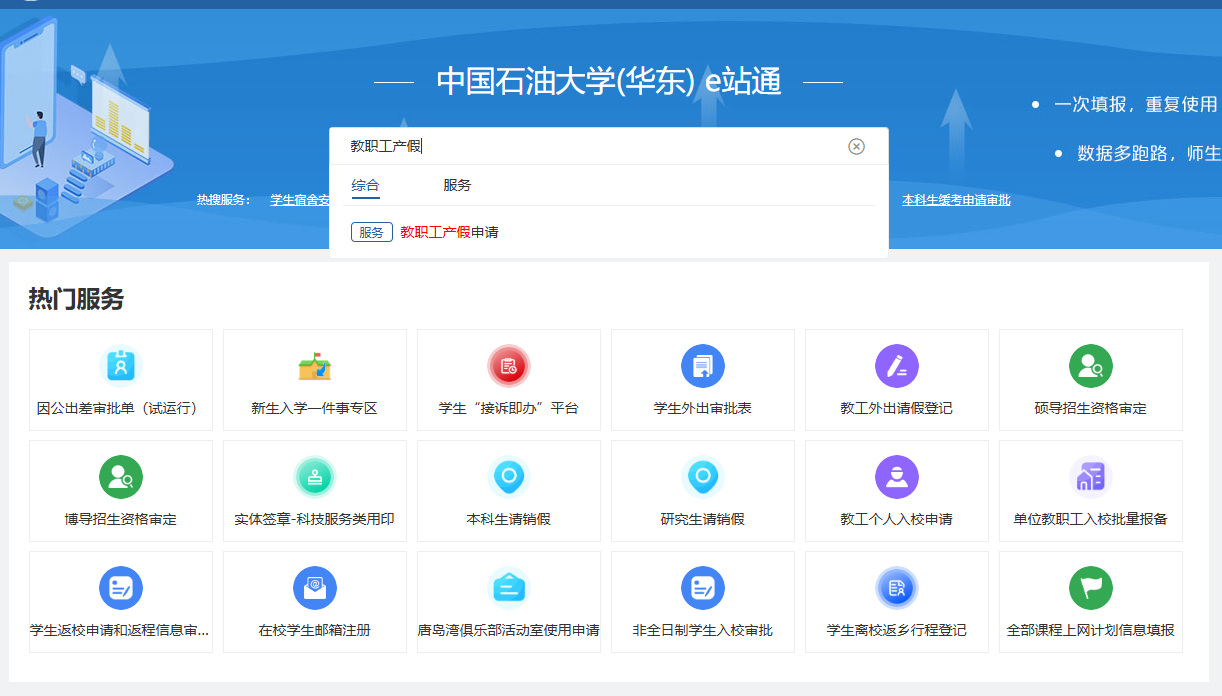 ·于中国石油大学(华东)e站通搜索教职工产假申请
